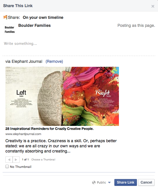 Now you can add your own comment where is says “write something”. You do not have to add your own comment. Lastly you click on the “share link” button on the bottom right.